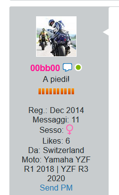 C'è ben. E anche il nome in colore diverso.Originally posted by 00bb00 View Post125) 00bb00 (Betti ) possiedo ancora qualche resto di un R1 2015 disintegrata alla Casanova-Savelli del Mugello e ora possiedo R1 2018