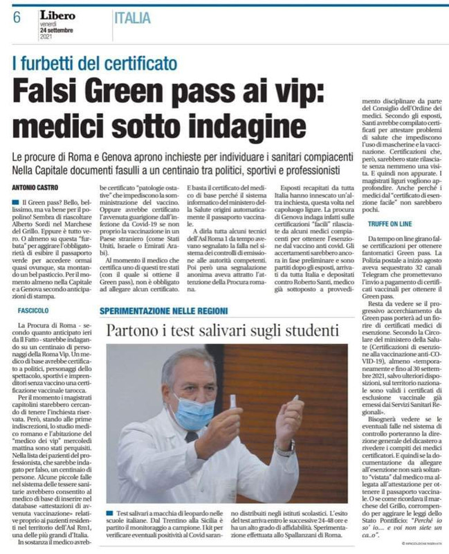 GREEN PASS obbligatorio ma non VACCINO
