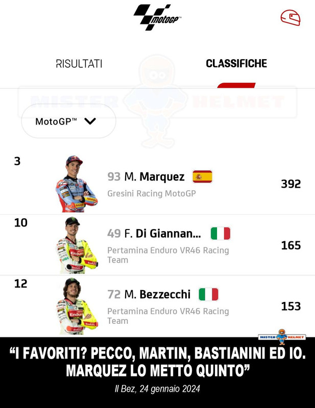 Ricordo BEZZECCHI a Valencia 1 anno fa che diceva che sarebbe sicuramente arrivato nei 4.. e contendente per il titolo..