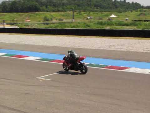 Prima esperienza a Franciacorta e secondo test in pista con la MitoRD350 piccoli problemi valvola pneumatico anteriore che perdeva aria (al 3? rientro mi sono trovato con 0,8 bar). Al 4? rientro il carbuatore di sx ha perso il filtrino ed il motore si smagriva. Al 5? rientro 2? giro ho perso il pignone e fine della festa proprio quando cominciavo a capire un po' la pista da che parte girava. Comunque ora con i getti da 290 il motore gira bene pieno fino ad 11.000 g/' , forse ci strebbero anche quelli da 300.