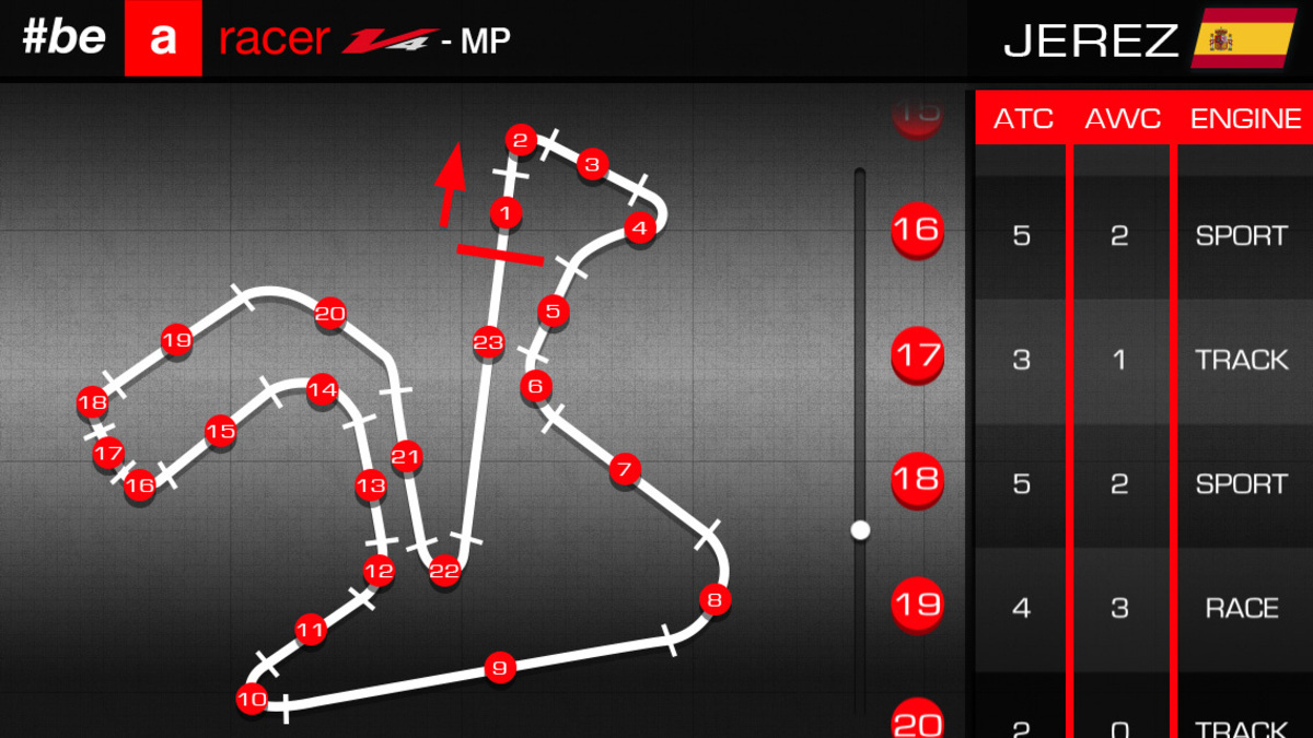 Imola ? stata impostata con li dati dalle telemetrie di Biaggi Laverty e Silvano.Originally posted by avvonico View PostNo, sono sistemi completamente diversi. La RSV, tramite un'APP sul cellulare ed il GPS dello stesso, avr? la possibilit? di impostare i parametri di regolazione del TC, dell'anti impennamento e del freno motore in maniera variabile da punto a punto del circuito, automaticamente in tempo reale, secondo schemi pre impostati da Aprilia (e comunque variabili dal conducente).
