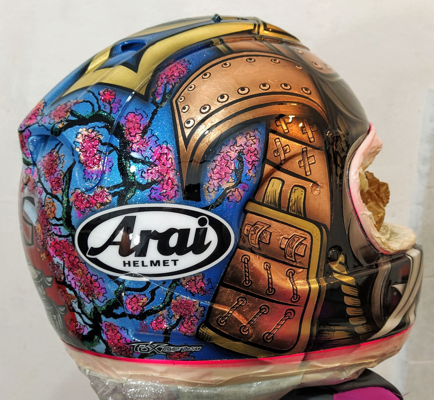 Le prese d'aria e guarnizioni non vengono assolutamente smontate ma incartate in modo tale che ovviamente non si blocchino perch? non si potrebbe poi garantire un riassemblaggio ottimale come in uscita dalla casa madre, l'unico caso in cui questo si fa ? quando la casa stessa (magari per un pilota) ti fornisce il casco smontato e dopo l'aerografia lo riprendono in carico per riassemblarlo e controllarlo.