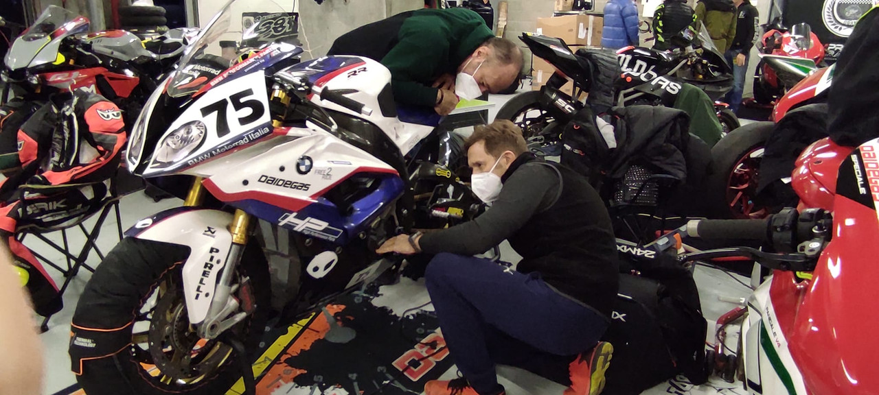 Dopo la sistemazione nel box..con solamente gramigni,Bassani e Rinaldi..