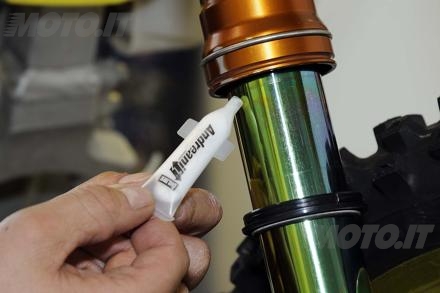 Andreani Group ha realizzato una pratica ed esclusiva confezione di lubrificante a formulazione speciale per tutte le forcelle di moto stradali e fuoristrada, il cui impiego periodico prima e dopo l?utilizzo della moto migliora la scorrevolezza, evita le rotture del paraolio dovute all?attrito di primo distacco e allunga la vita delle guarnizioni.