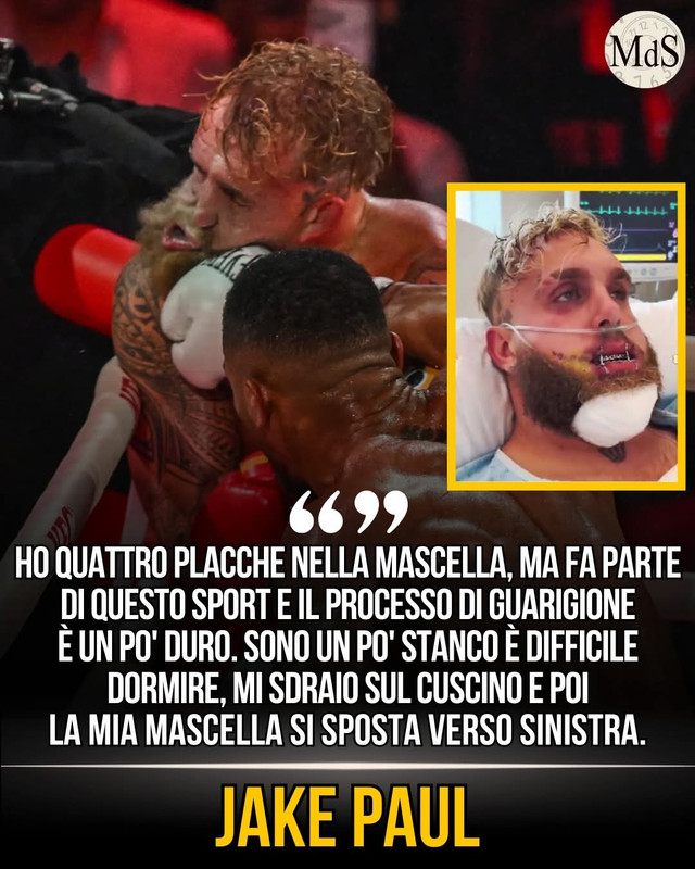 Jake Paul continua il processo di recupero dopo il match perso vs Antony Joshua. Il pugno sferrato gli ha distrutto la mascella e la ripresa è più dolorosa di quanto potesse immaginare.