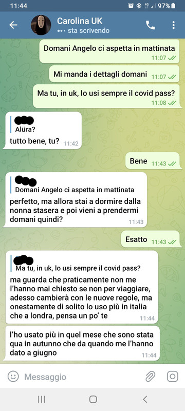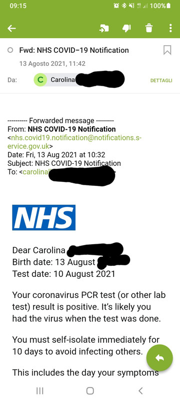 Ho parlato anche con il suo GP - general practitioner, non green pass- (Carolina ha contratto la malattia ed ha sofferto per circa tre mesi di tachicardia, poi risoltasi spontaneamente, ora è sotto controllo cardiologico, pare essere in buone condizioni), ma lo stesso GP (il medico di base, non il green pass) non mi ha comunicato grosse sofferenze sul territorio.