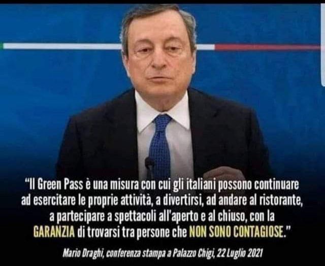 durante la conferenza stampa di qualche giorno fa, un giornalista gli chiese se fosse consapevole dello scivolone fato iquando pronunciò queste parole, Draghi rispose di no in quanto in quel preciso periodo, considerando che la maggior parte dei vaccinati non avevano ancora visto calare la copertura vaccinale, la situazione era proprio quella