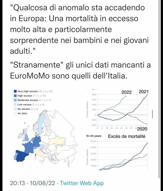 Com’è possibile che un virus abbia un comportamento così marcatamente disomogeneo? Il Covid-19 o per evoluzione naturale o per mano umana è capace d’inserire il suo genoma ad Rna anche nel Dna mitocondriale e quando lo fa mostra il peggio di sé. Ciò premesso che fanno i vaccini ad mRNA di Pfizer e Moderna? Integrano anche essi l’Rna virale del covid-19 nel genoma mitocondriale occupando così la sede che, se occupata dal virus, scatena la sua sindrome severa. Così operando i vaccini ad mRNA, prima di tutto non hanno la conformazione funzionale dichiarata, ed, in secondo luogo pur creando una risposta anticorpale essa risulta inefficace. Bisogna notare che per fare un vaccino con funzioni mimetichetopiche prettamente cellulari bisognava sapere da subito che SARS-Cov2 si poteva integrare anche nel DNA miticondriale; ma nessuno l’ha mai detto. A questo punto è doveroso sospendere l’uso di questi vaccini ad mRNA e vedere veramente di che “ pasta “ sono fatti".Last edited by Funik; 11-08-22, 09:24.