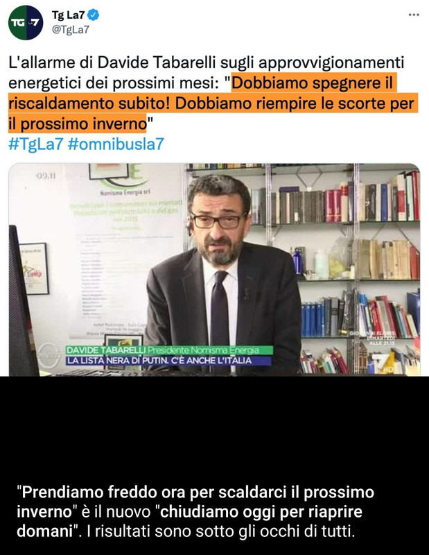 Dalla Russia importiamo pure il carbone, cioè se quello davvero decide di fare sul serio in Italia rischiamo di dover abbattere gli alberi dei parchi pubblici per accendere un fuoco e questi pensano alla dittatura in Russia