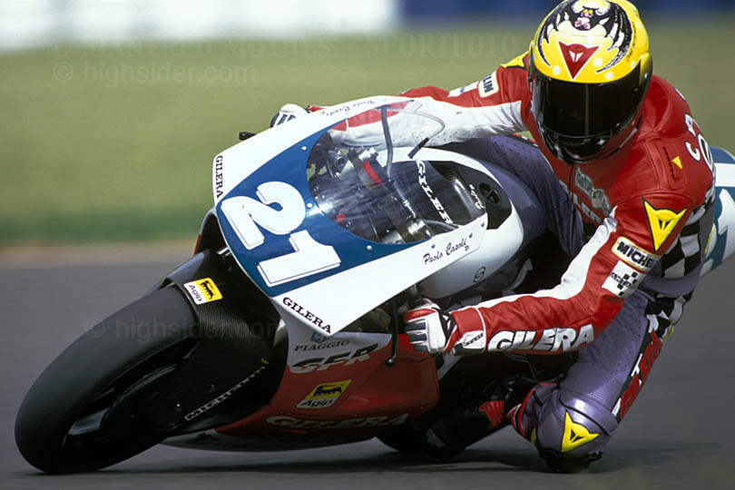 appena finito di piovere,infuriava ancora Una battagli a gavettoni in cui era coinvolto piu' o meno tutto il, paddock,compresi Nico cereghini e Giampiero sacchi. in fuga paolo pileri,che gia' allora,in tempi non sospetti,si allenava a sfuggire alle forze dell'ordine che di li' a poco avrebero bussato alla sua porta....