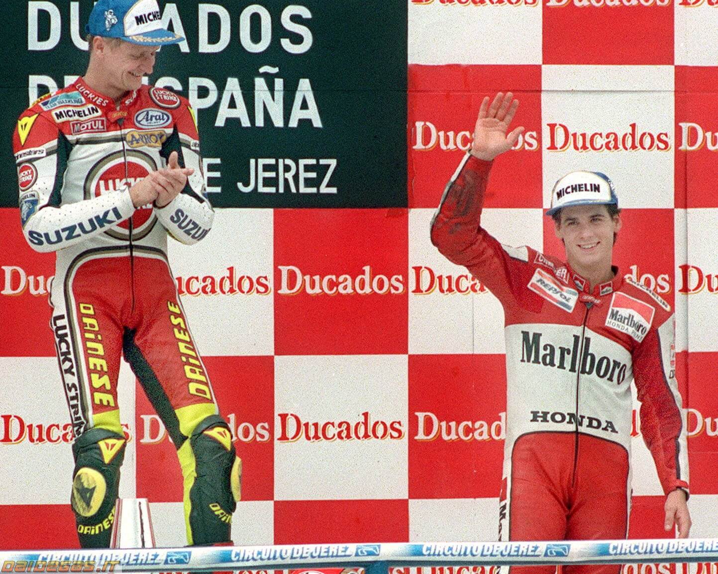 Kevin Schwantz sul podio con Alex Criville