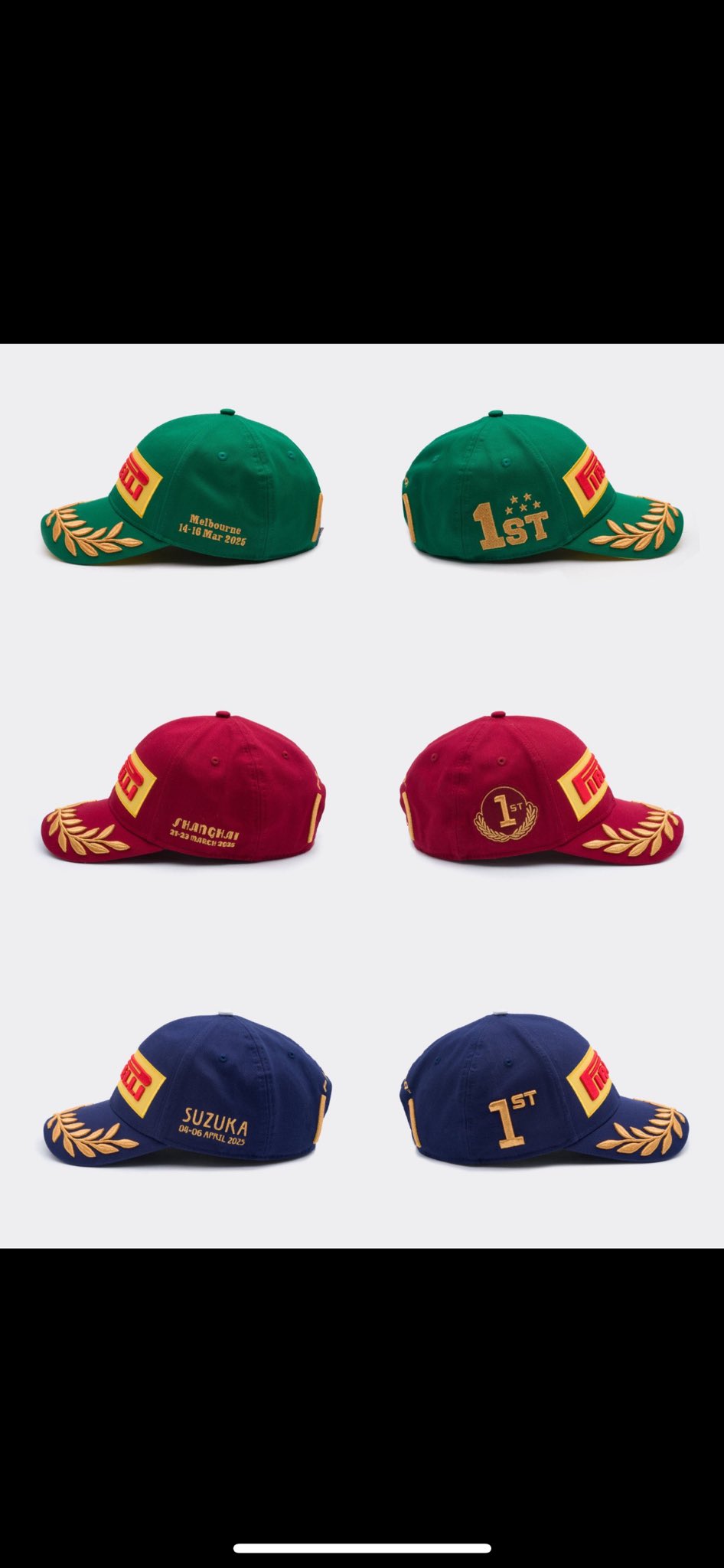 I cappellini PODIO PIRELLI F1 di Australia, Cina, Giappone