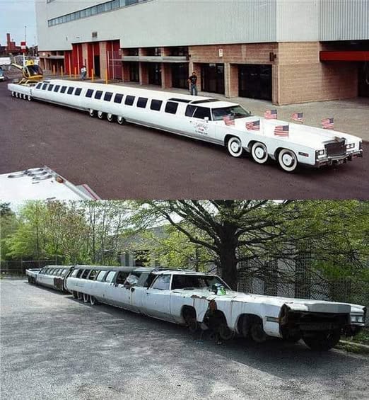 Questa limousine lunga 30,5 metri è stata considerata l'automobile più lunga del mondo. Aveva 26 ruote, una piscina con trampolino, un letto ad acqua gigante e persino una pista di atterraggio per elicotteri. Il veicolo è stato progettato per piegarsi a metà per affrontare le curve.