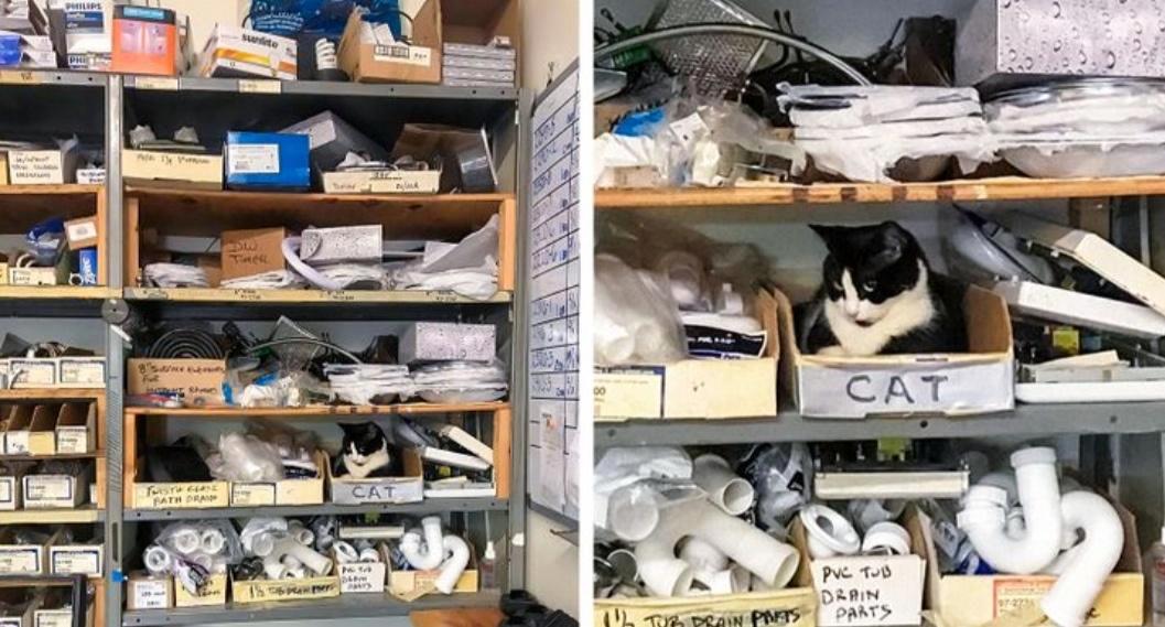 gatto messo in ordine sullo scaffale