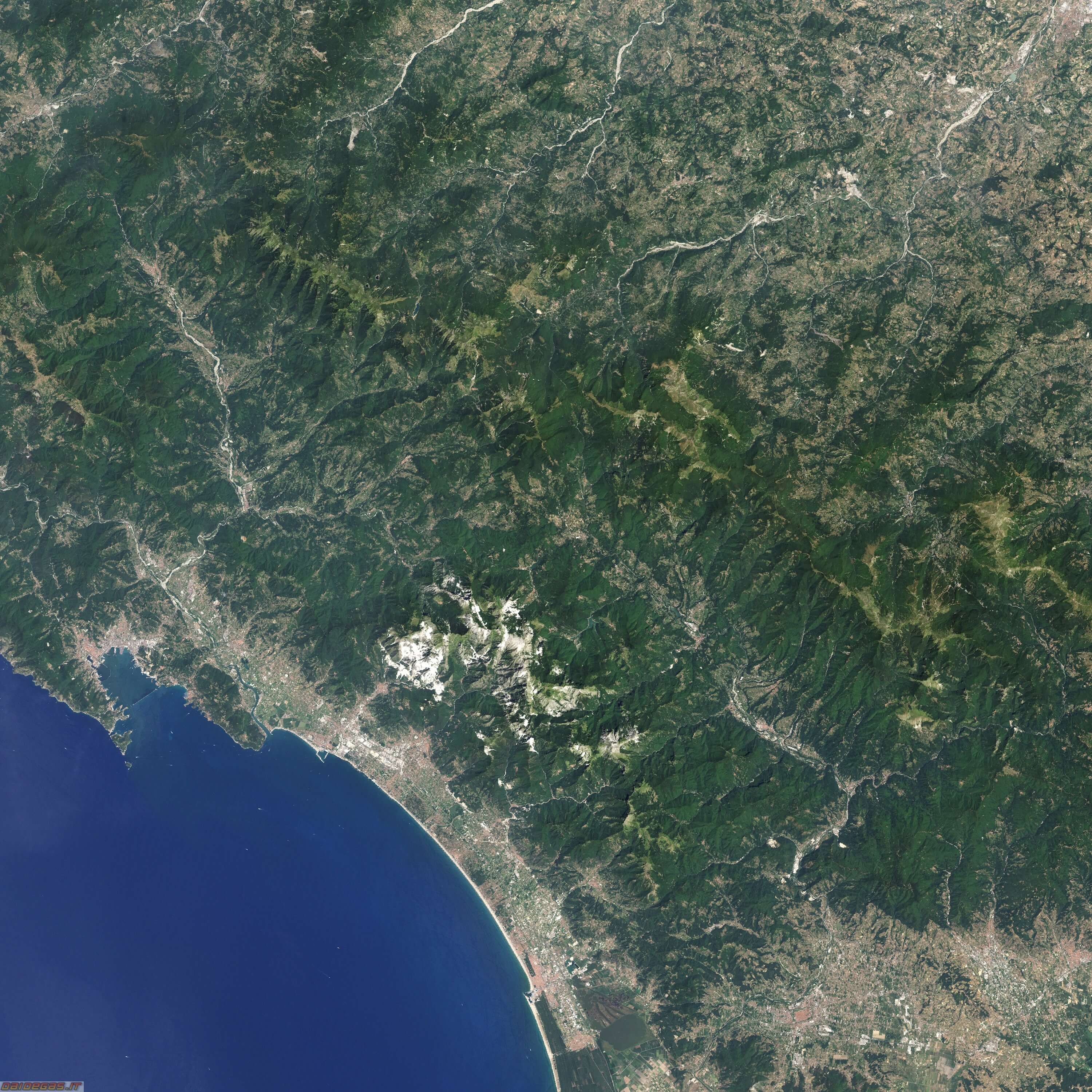 la "neve" che si vede anche dall'autostrada altro non e' che scarto di materiale che scende in gole lungo le montagne,chiamati localmente "ravaneti",questa pratica non so se e' ancora consentita.
