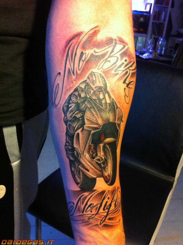 Tatuaggio ammortizzatore moto polpaccio