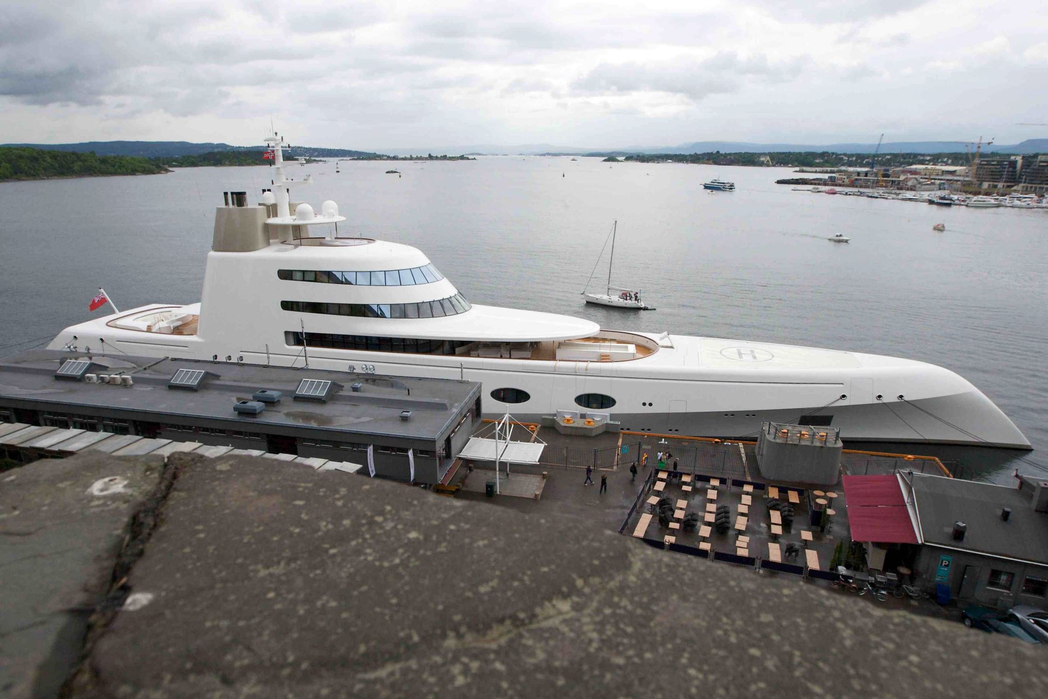 163,5 metri di lunghezza per lo yacht Eclipse di Roman Abramovic, progettato e costruito in cinque anni dai tedeschi Blohm+Voss. L'imbarcazione varata nel 2010 ha due eliporti, una piscina di 16 metri e un mini sommergibile per escursioni sottomarine. La struttura ? dotata di 24 cabine per gli ospiti del presidente del Chelsea, oltre agli alloggi per i 70 membri dell'equipaggio.