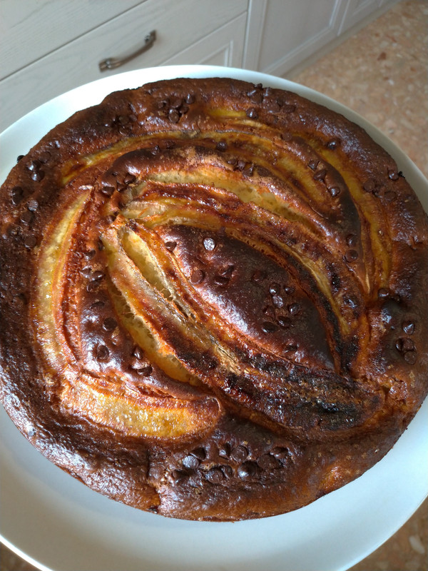 Che bella cosi lucida e perfetta sembra uscita dalla pasticceria.... non ho mai fatto la torta di banane...sicuramente sar? molto gustosa e morbida