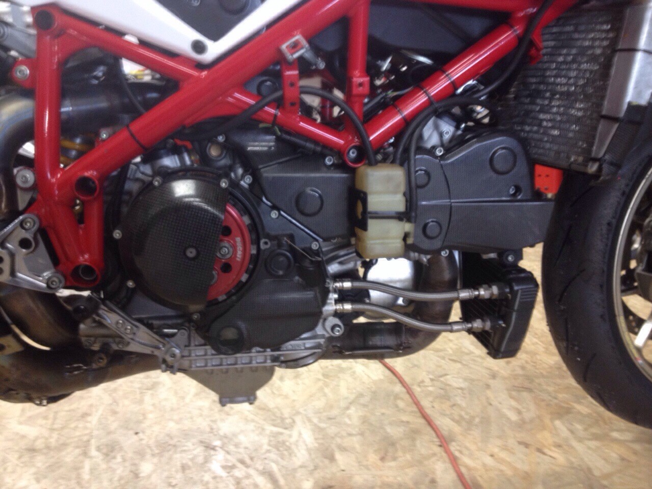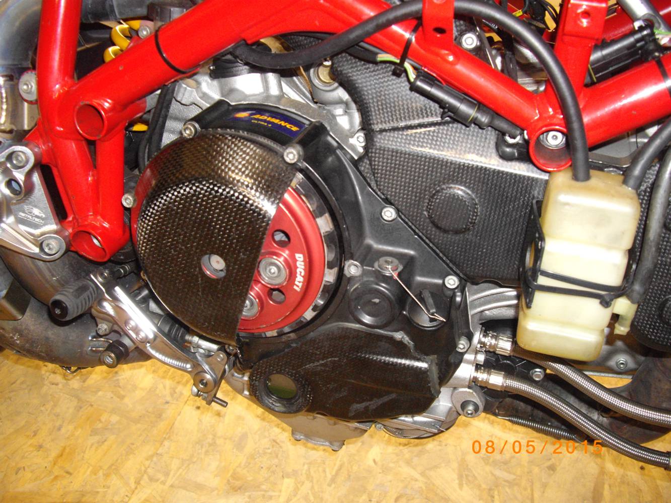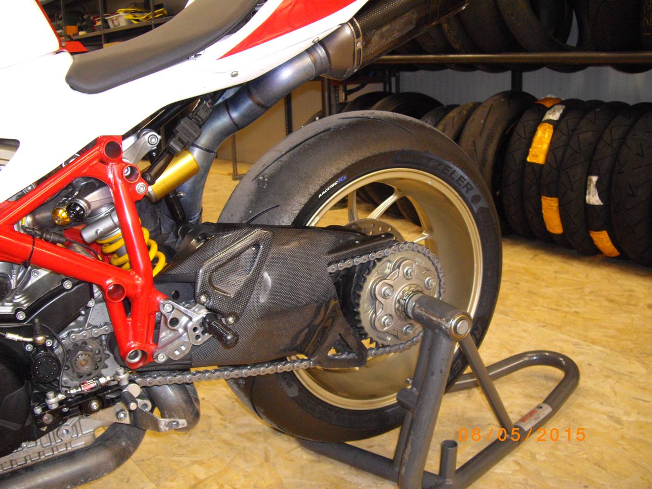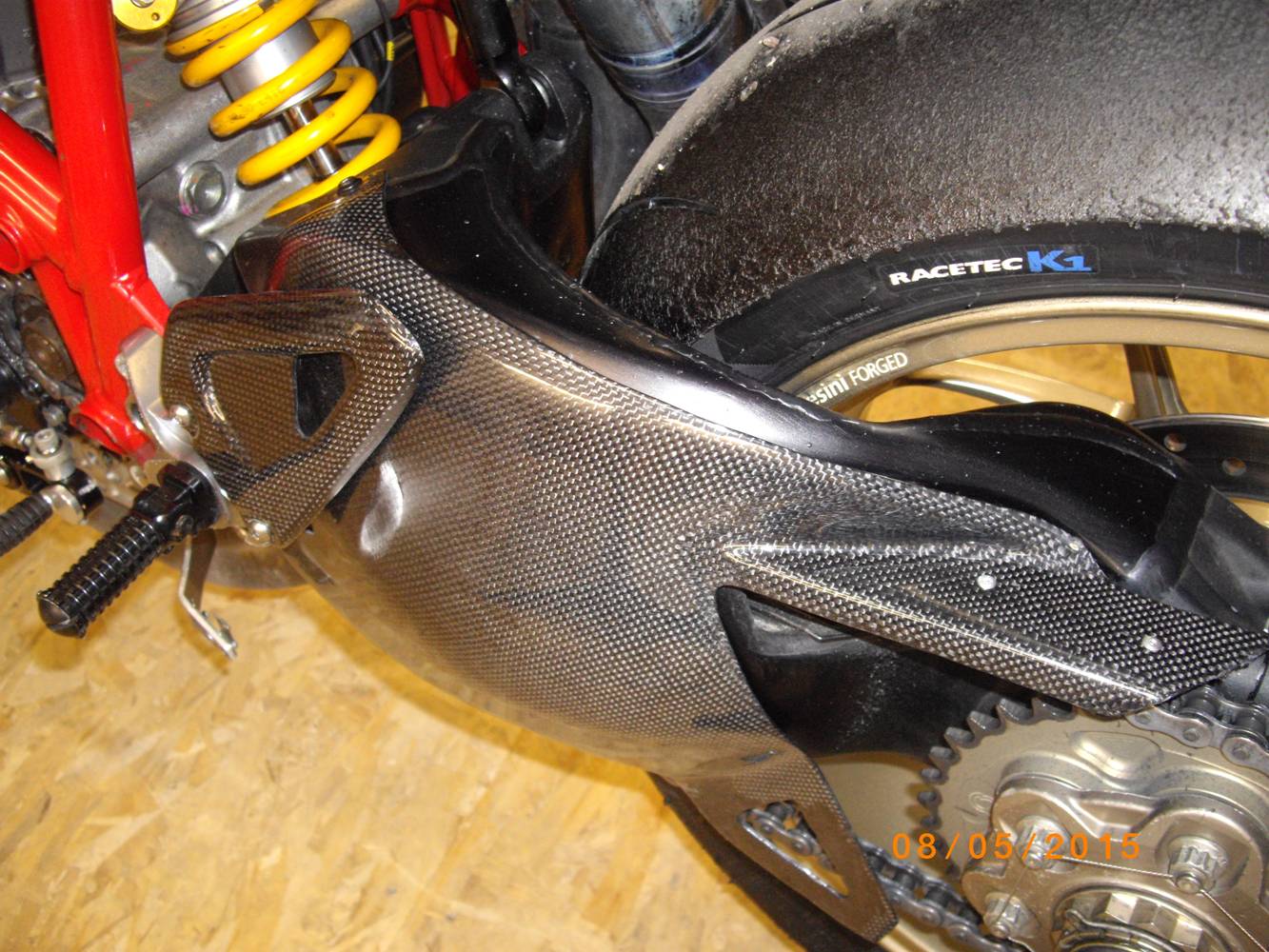 la moto ? pronto gara, quindi spugna nel serbatoio, protezioni motore gbracing, paraleva freno, paraforcellone con pinna catena,