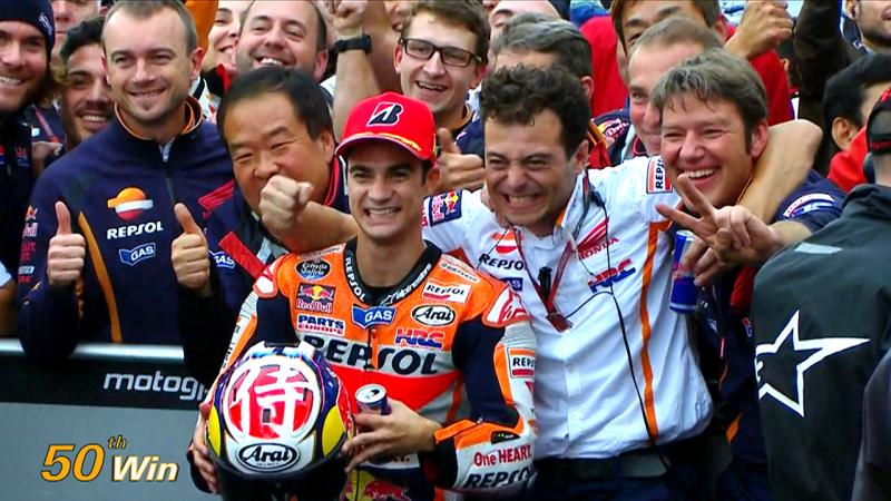 GP del Giappone 2015, la cinquantesima vittoria. Da sempre uomo HRC, proprio sulla pista casalinga di Motegi raccoglie la cinquantesima vittoria in carriera entrando di diritto nel club dei grandi nomi del motociclismo.
