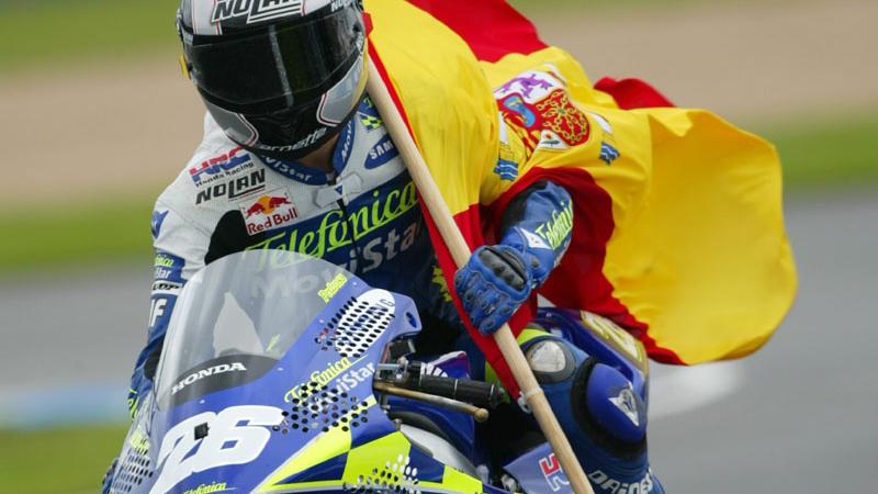 GP della Malesia 2003, ? corona iridata. Nonostante un grave infortunio nelle prove del Gran Premio d'Australia che gli impedisce di correre gli ultimi due GP, il pilota Honda corona il sogno iridato con 223 punti.