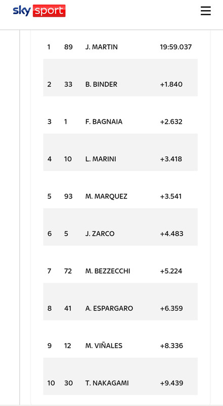 ) e Marini ha dimostrato che vale oltre la parentela, bravo! Honda sempre peggio, certo se la batte con Yamaha ma resta una cacca indecente