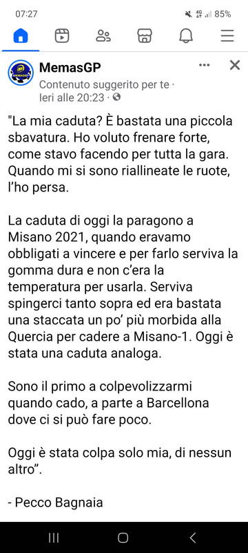 Bagnaia doveva pure fare quarto, ma anche quinto, non esiste cadere. In india non ne aveva dai, doveva solo limitare i danni e non fare quello che ha fatto.