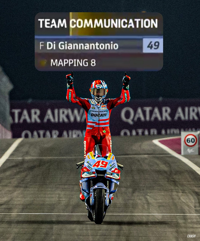 Poi per me lo "0000" significava "Bravo hai fatto vedere che potevi stargli pari (e/o Superarlo) ora attieniti a Mappa8" ... ossia che il vero intento era superare Pecco E POI lasciarlo vincere ... il resto c'ha pensato Pecco a fare la Minkyata andando dritto ...