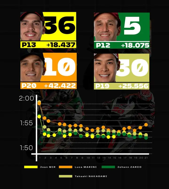 Pecco impressionante appena leggeva sulla lavagna un distacco sotto il secondo dava il tirotto e tac 1.2. Comunque è incredibile avere una consapevolezza del genere su quanto si possa e si deva spingere. Con le Bridgeston uno tipo Lorenzo partiva e faceva tutto il GP al 95% senza rischi di cali di concentrazione e di gomma e arrivava alla fine con secondi di vantaggio. Adesso devi partire e tirare il giusto in modo che non ti raggiungano ma guidare anche in modo da salvare la gomma. Queste son capacità che contano sempre di più e credo che in questo Pecco sia veramente un campione sicuramente leggermente meglio di Martin. Uno dei peggiori nella capacità di gestione della gara credo sia Miller