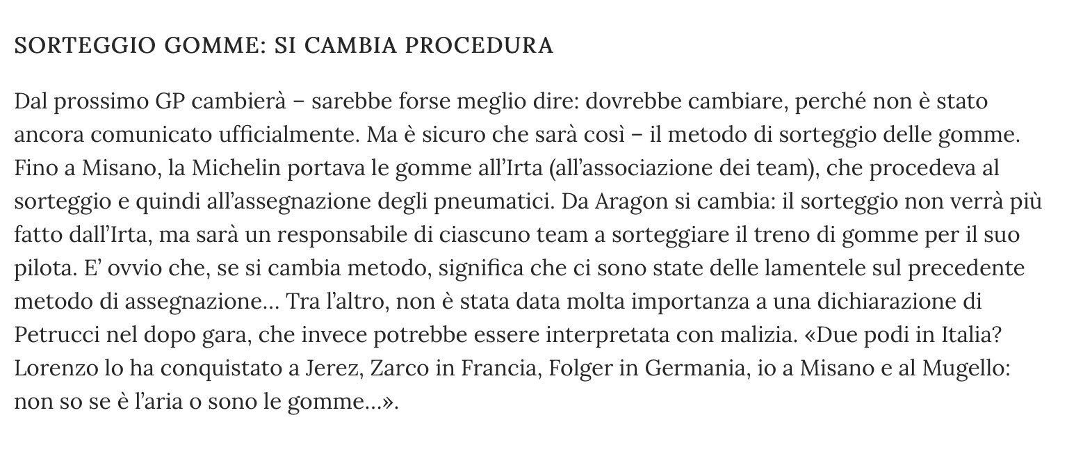 Quindi michelin assegna le gomme direttamente alla squadra....siamo a posto