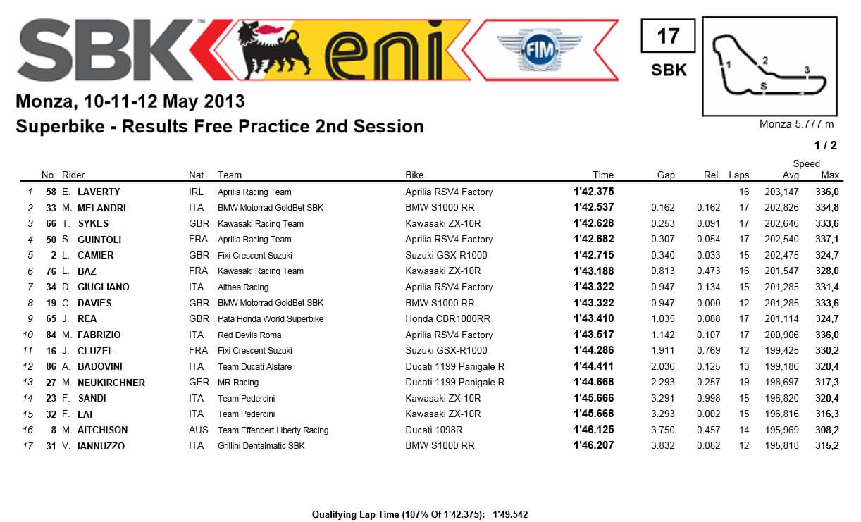 MONZA SBK prove libere del sabato