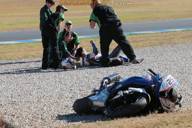 Durante la seconda sessione dei test svoltisi ieri sulla pista di Phillip Island in Australia, il pilota del BMW Motorrad Italia Superbike Team Sylvain Barrier ? stato vittima di una caduta, mentre percorreva ad alta velocit? la curva 11 prima dell'ingresso al rettilineo di arrivo.