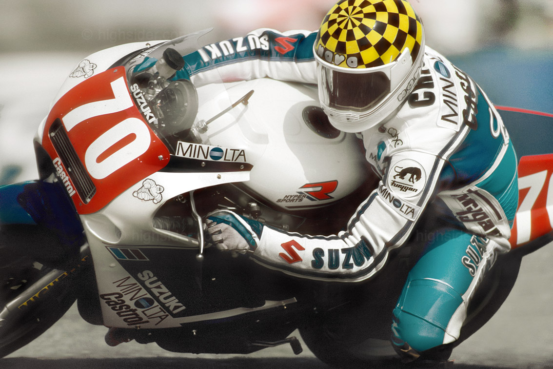 Andare forte era una parola grossa , tenendo conto che eravamo l'unica suzuki schierata nel mondiale SBK e che ai tempi non ci si qualificava di diritto come avviene oggi , ma al sabato dopo le prove ufficiali dieci piloti andavano a casa ed io non sono mai stato tra quelli , direi che non andava così male , tranne alcuni piccoli particolari , giusto ad Hockenheim quell'anno durante le prove , pensa che un pilota ufficiale in fondo al rettilineo che portava alla prima variante , poco prima che io decidessi di staccare , in traiettoria a me favorevole ( quindi sul bordo Sx della pista ) , sorpassandomi , con lo spostamento d'aria creato mi fece andare in sesta piena con le ruote sull'erba !!!! .